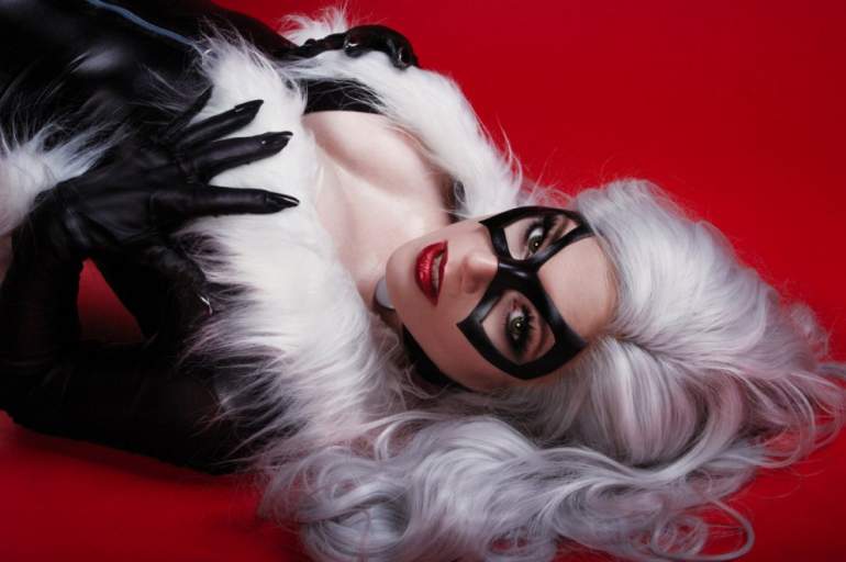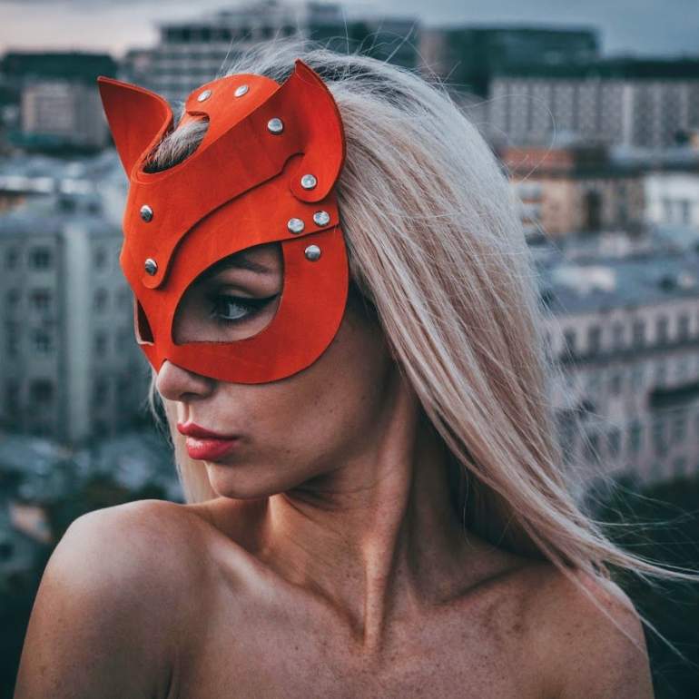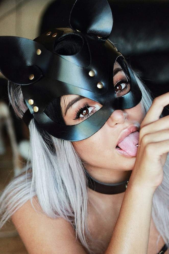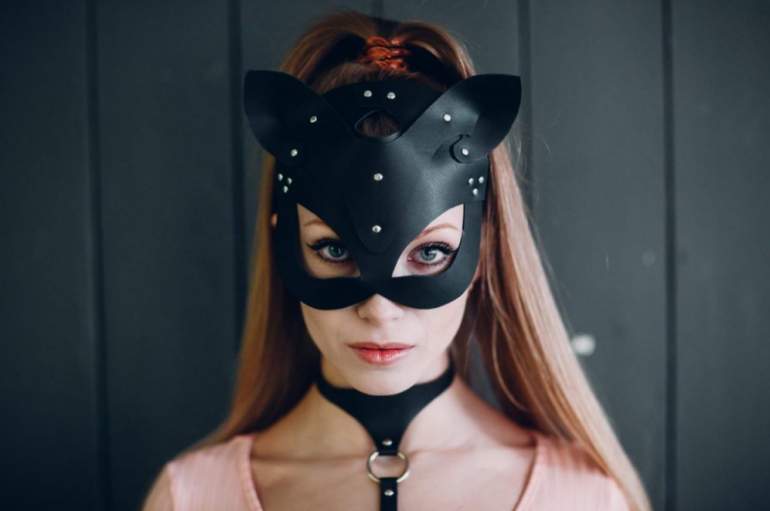 Блондинка в маске кошки.