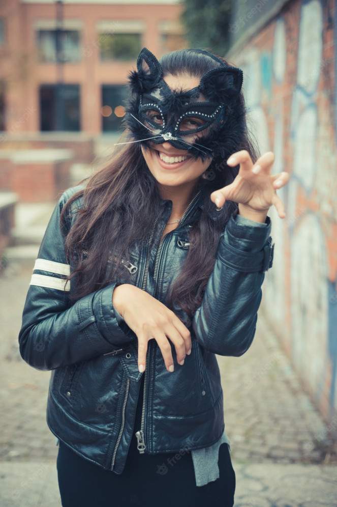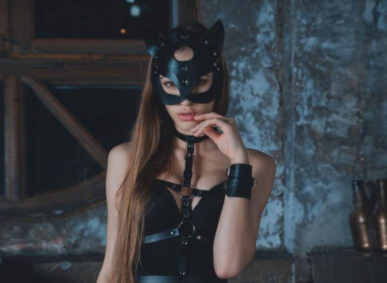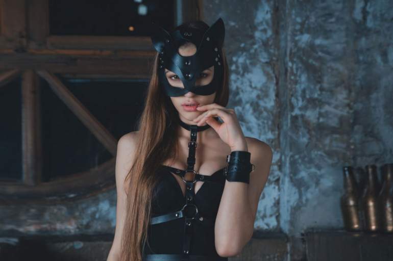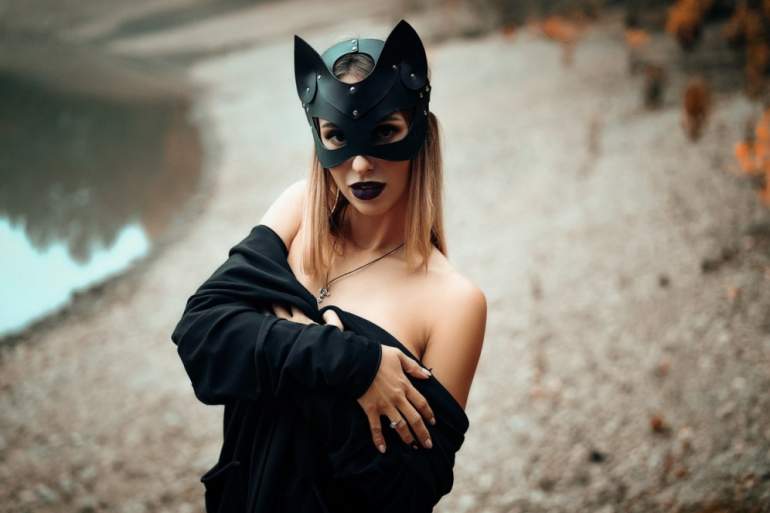 Девушка красавица в маске кошки фото.