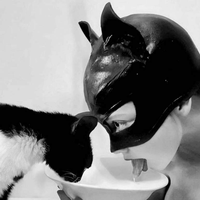 Человек в маске кошки.