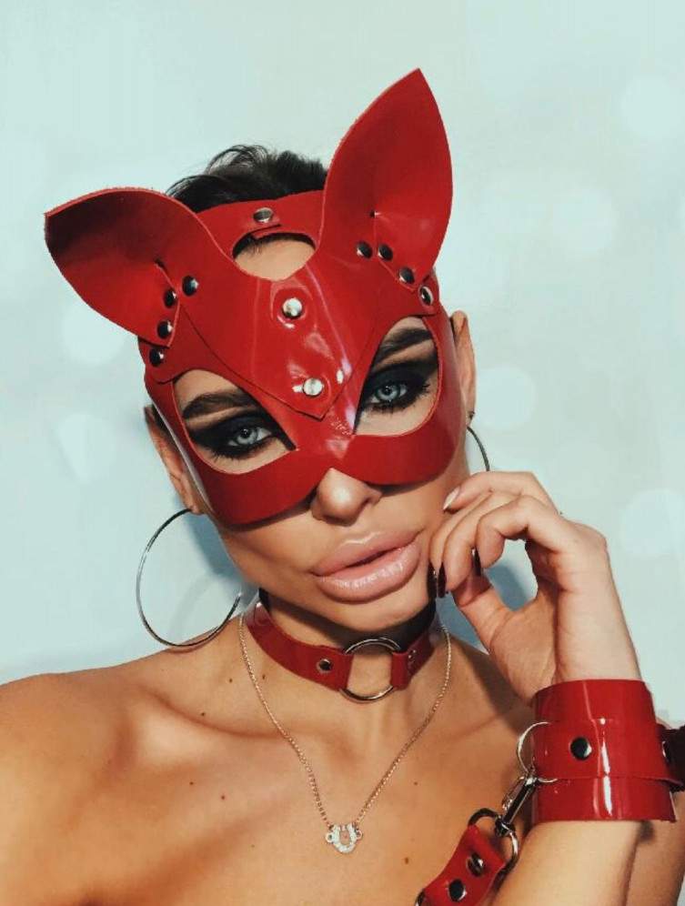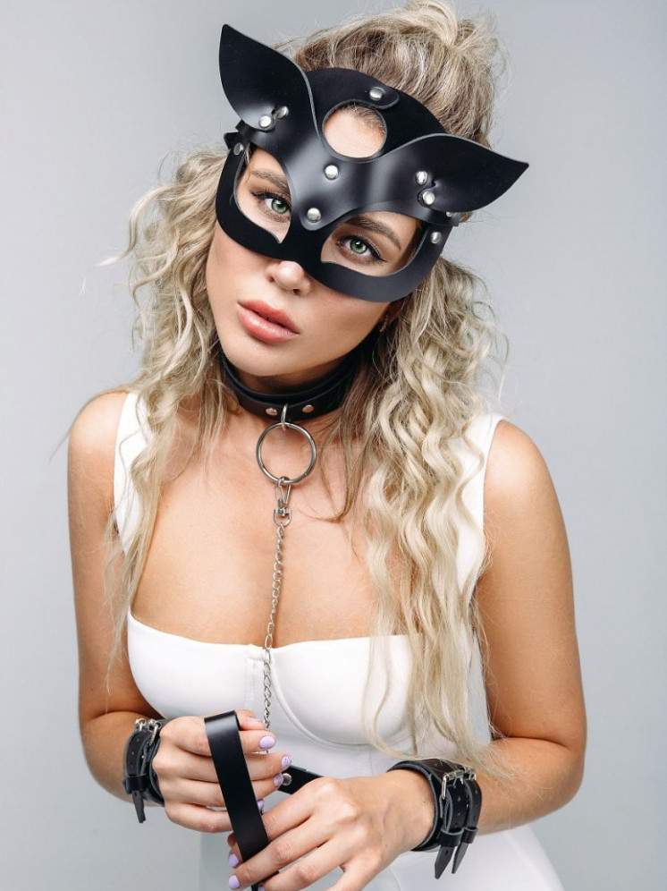 Маска кошечки кожаная.
