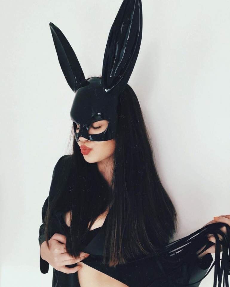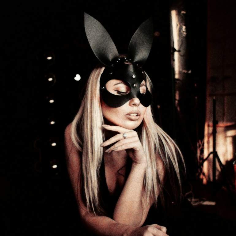 Девушка красавица в маске зайчика.