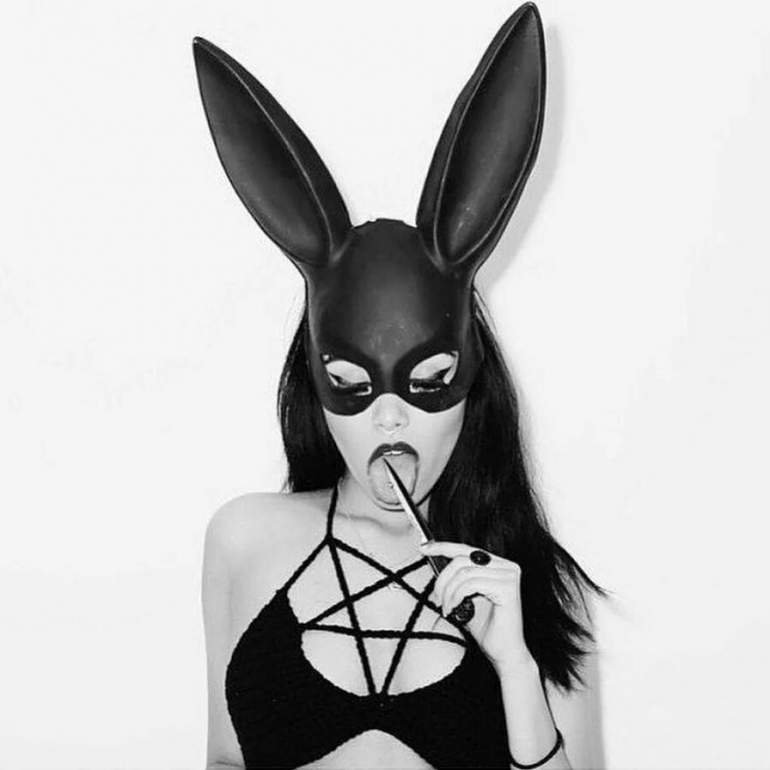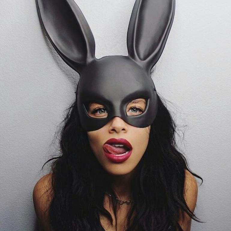 Ариана Гранде в маске зайца.