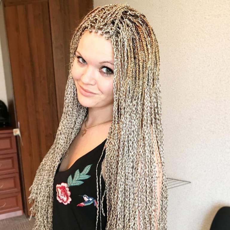 Много мелких косичек на голове.