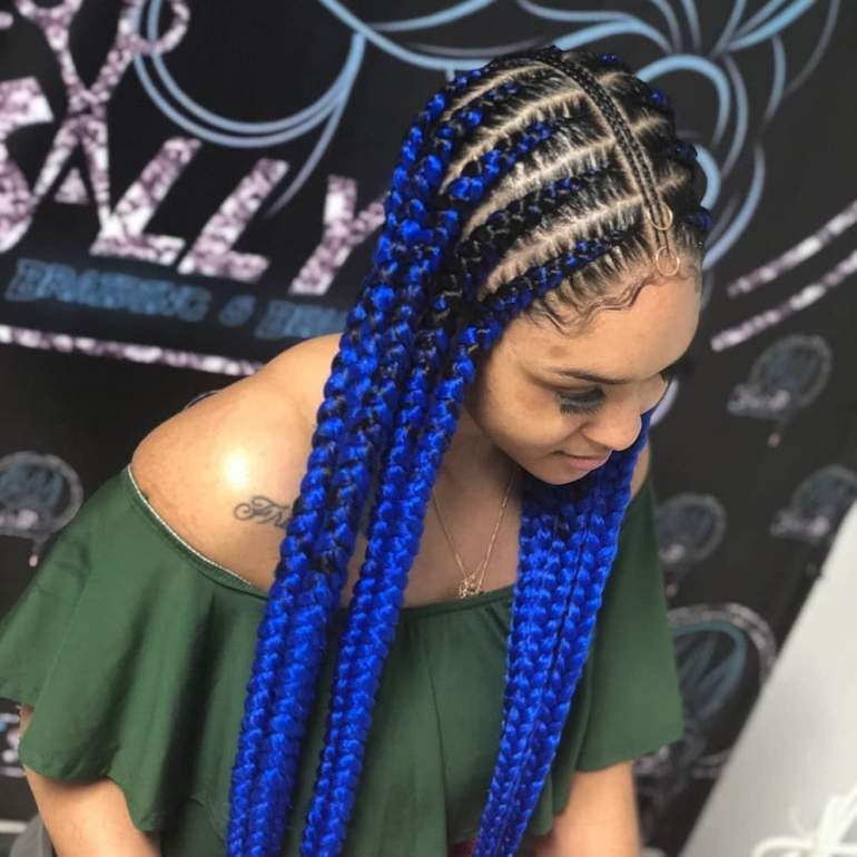 Афрокосы голубого цвета.