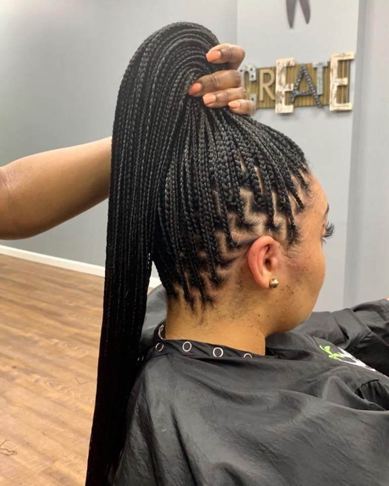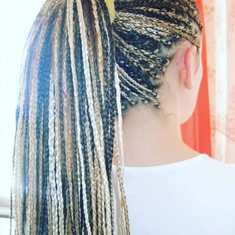 Афрокосы в хвосте.