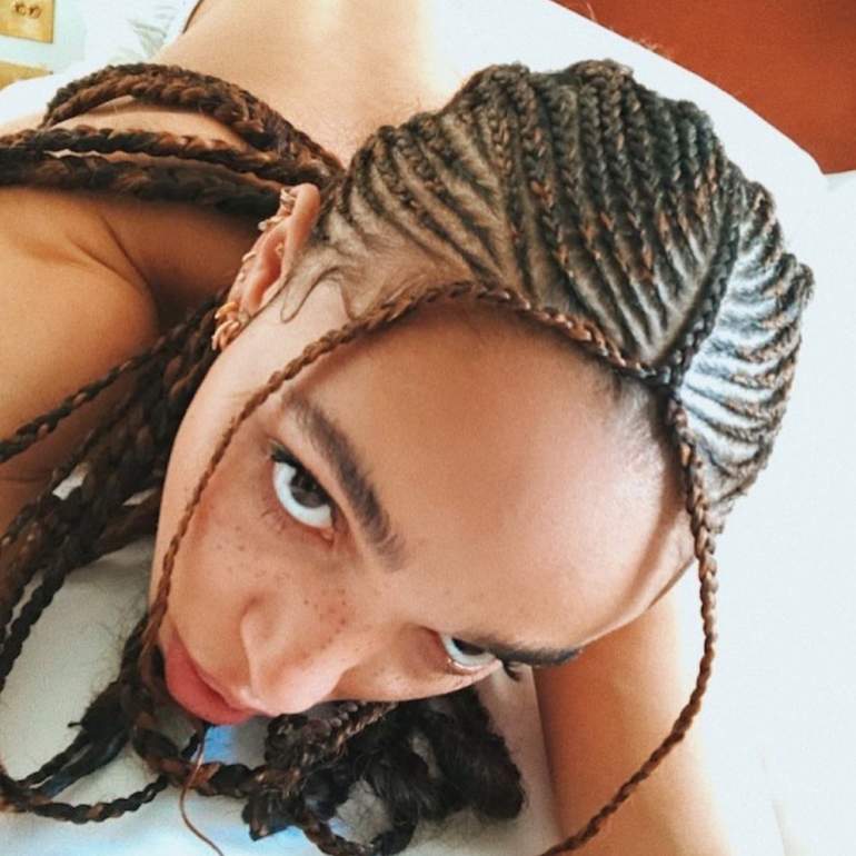 FKA Twigs с косичками.