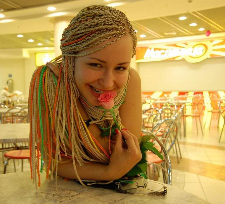 Прическа много косичек.