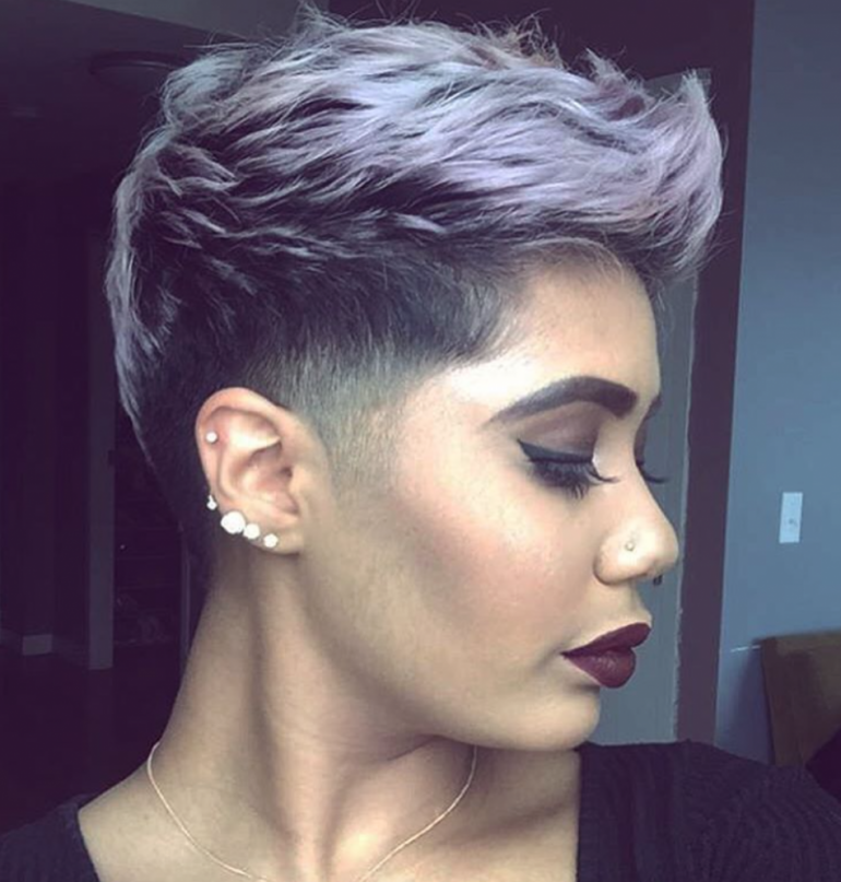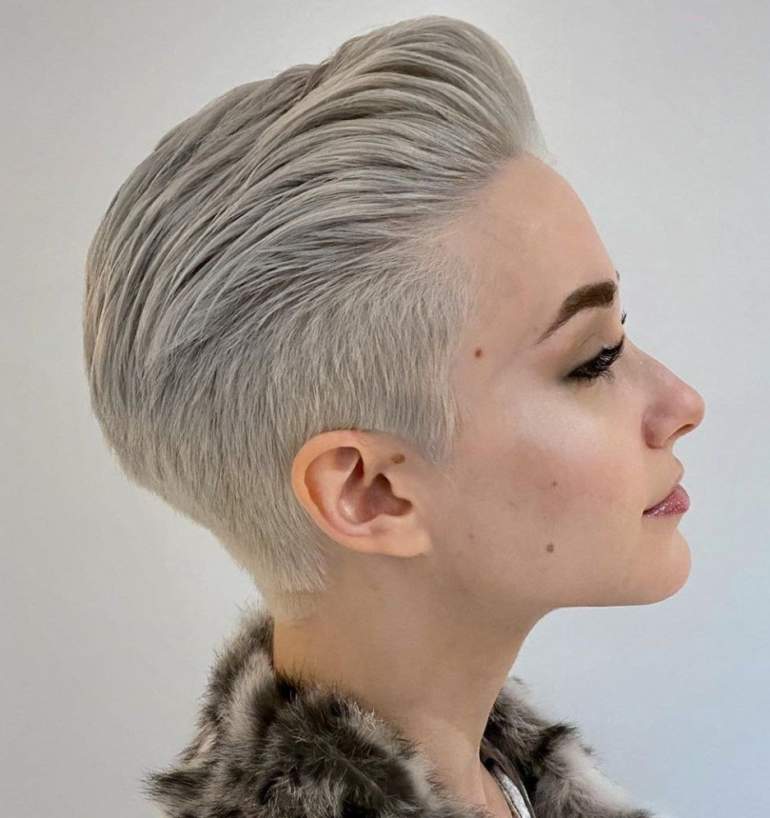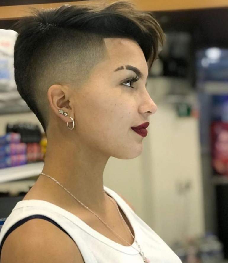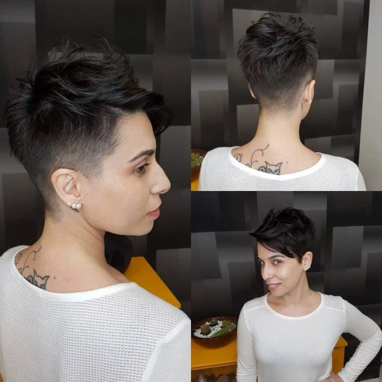 Пикси с выбритым виском и затылком.
