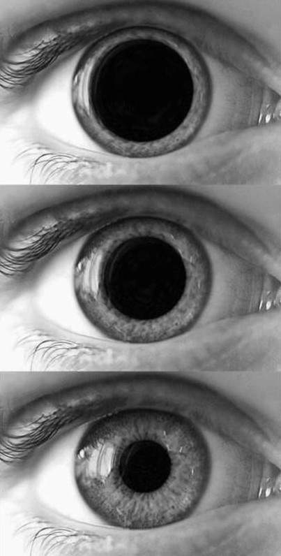 Сужение и расширение зрачка.