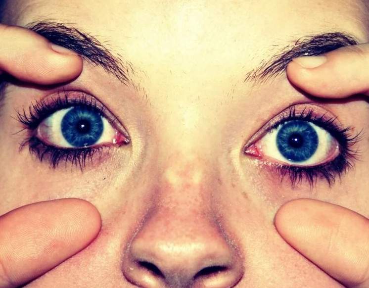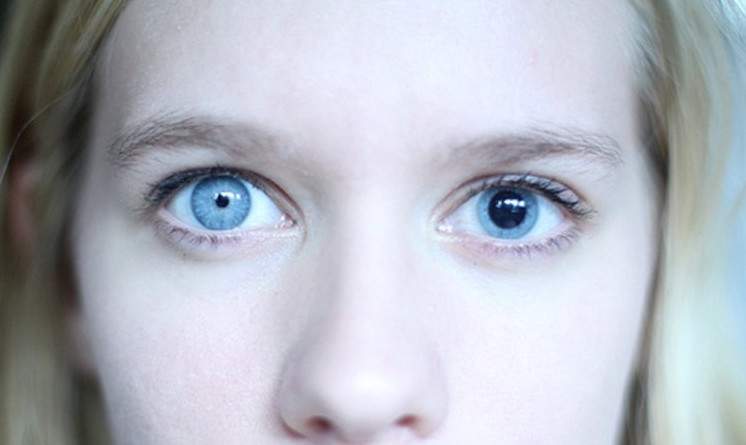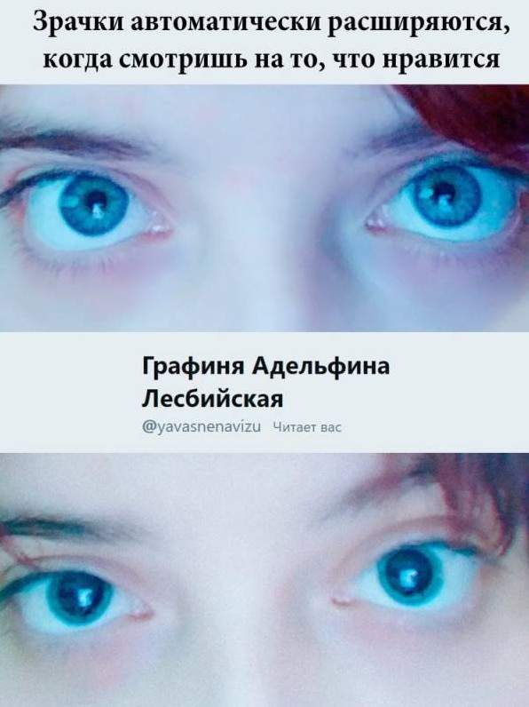 Большие зрачки голубые глаза.