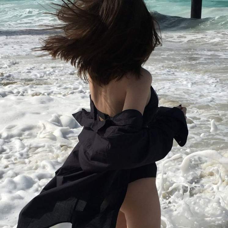 Эротика с брюнеткой на море со спины.