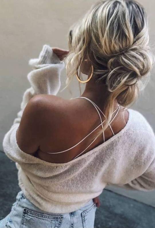Красивая девушка с русыми волосами без лица.