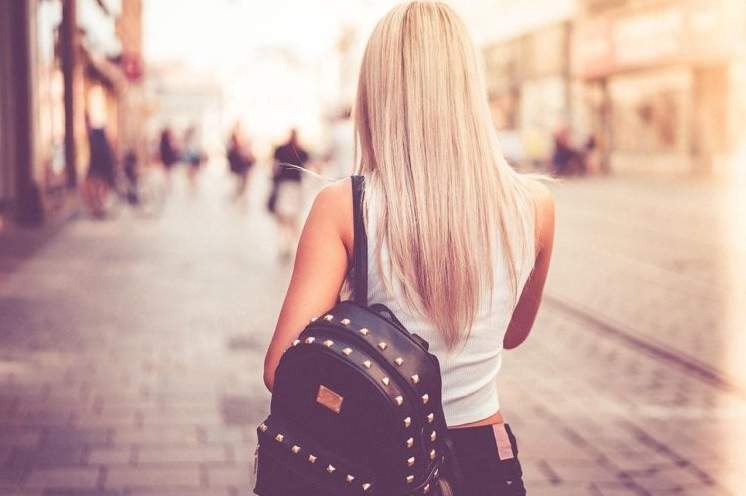 Красивая девушка блондиночка со спины.