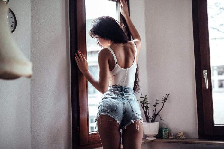 Эротика с брюнеткой в шортах со спины.