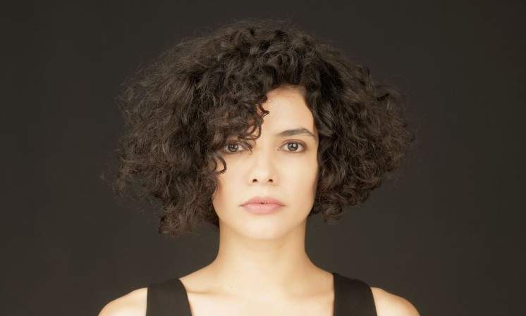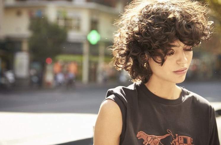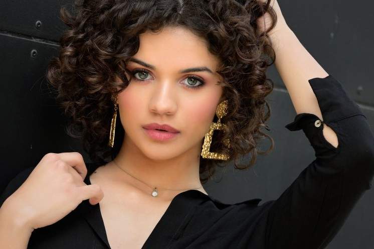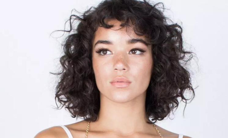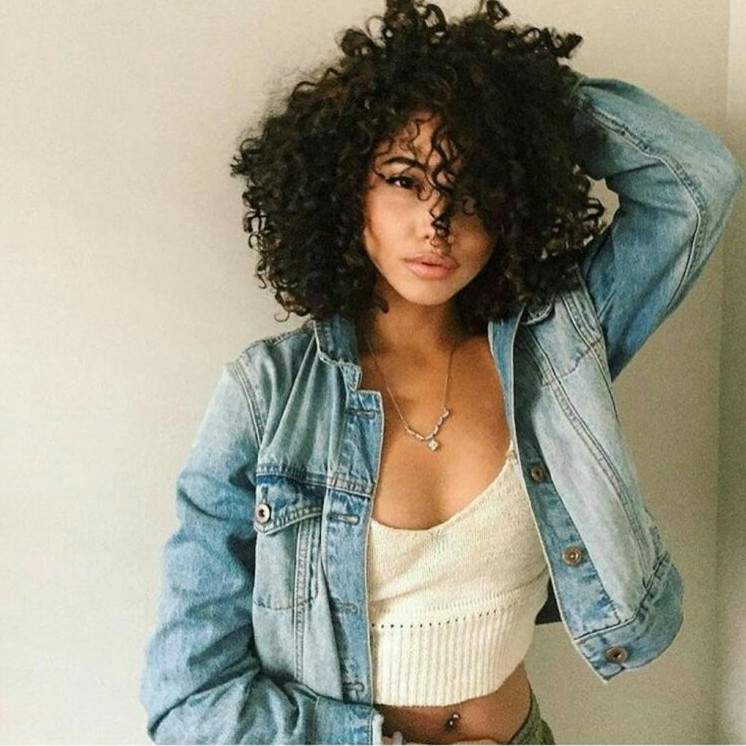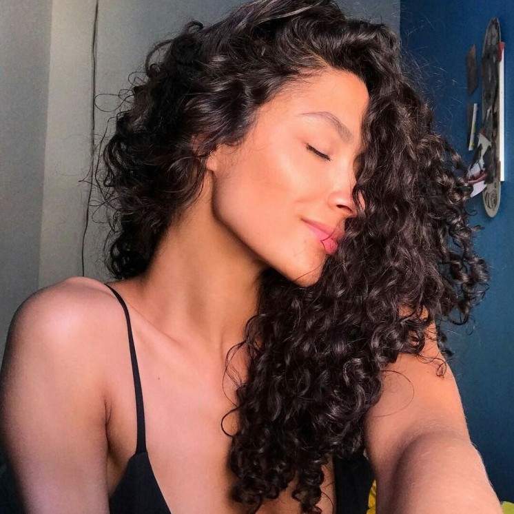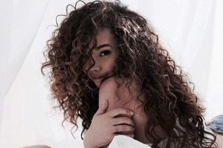 Девушка с темными кучерявыми волосами.