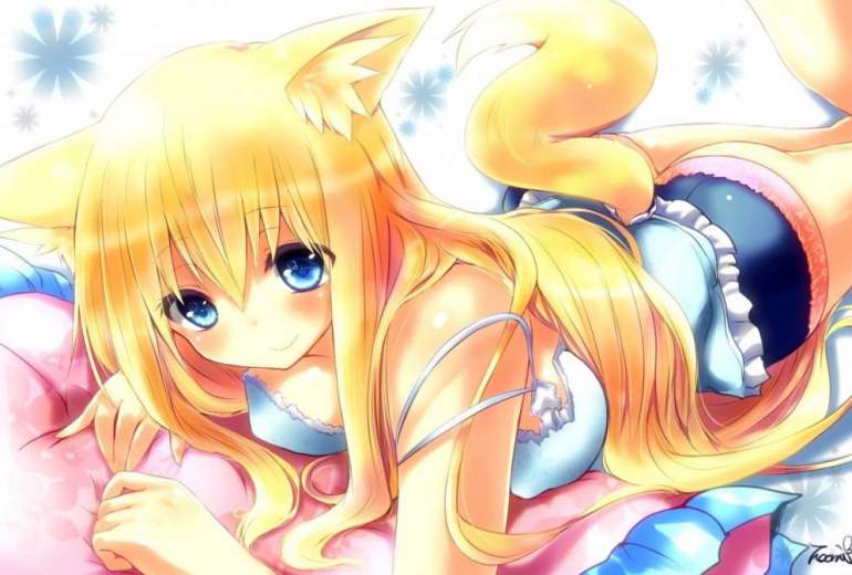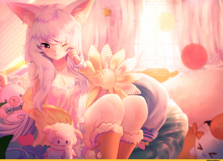 Очаровательные Картинки Аниме девушки с ушками и хвостиком.