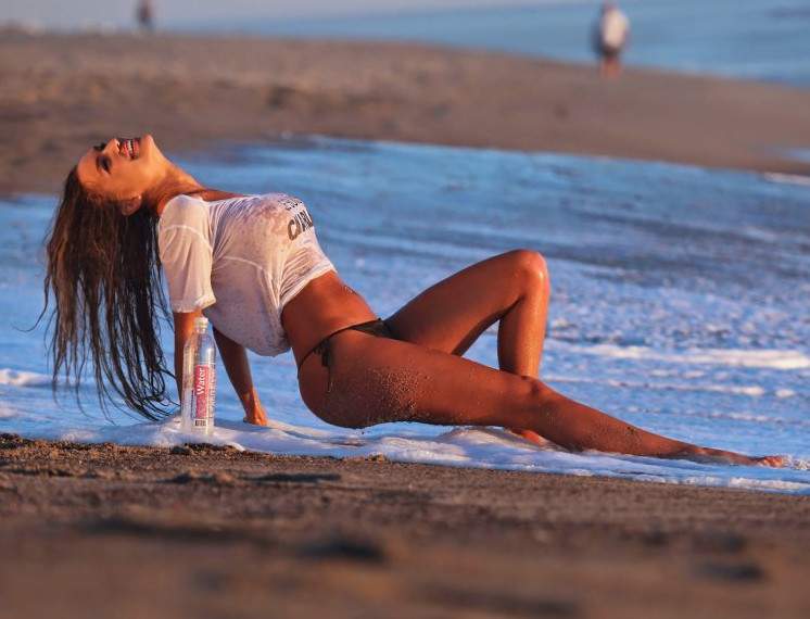 Милая и сексуальная прекрасная женщина лежит на кровати.