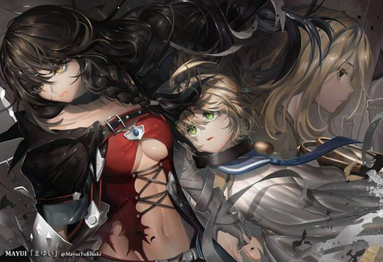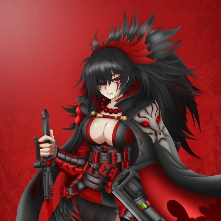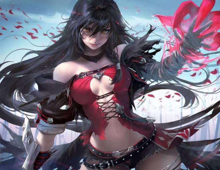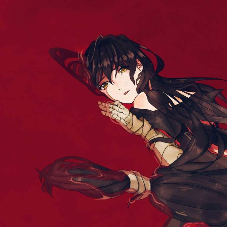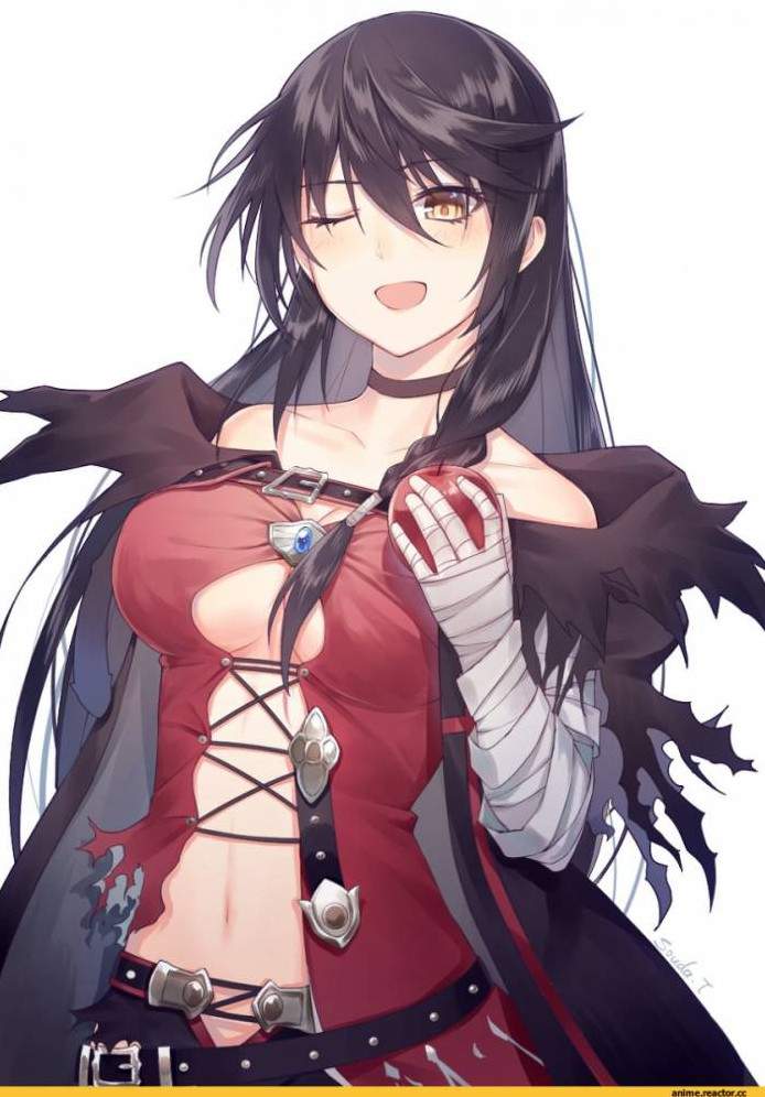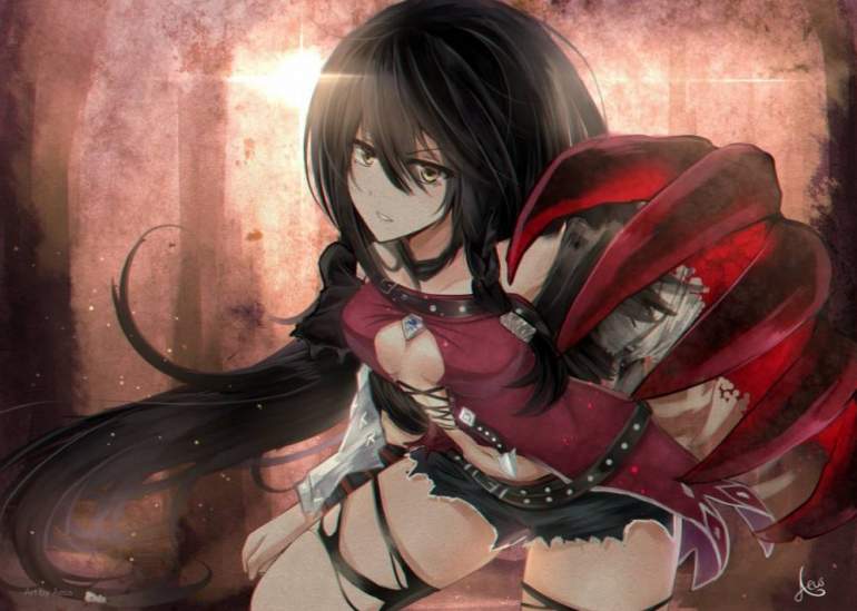 Картинки Аниме девушка красавица в красной куртке темные волосы.