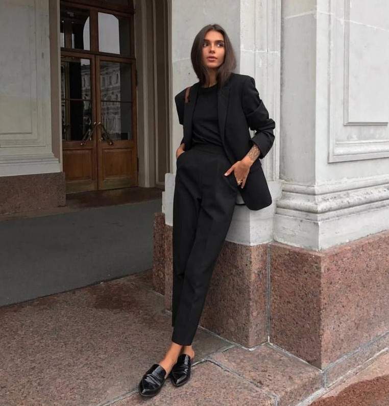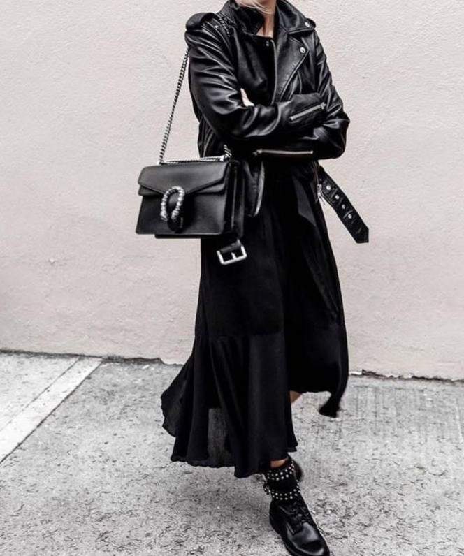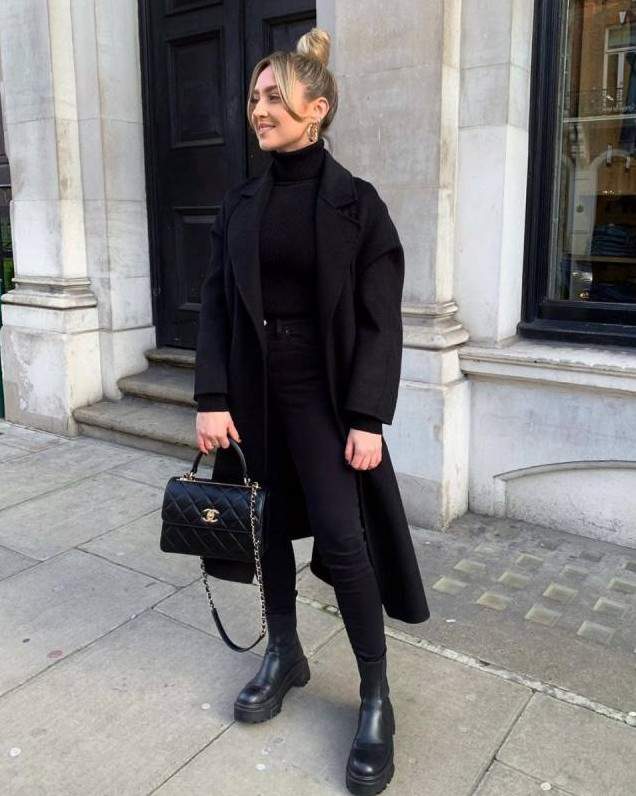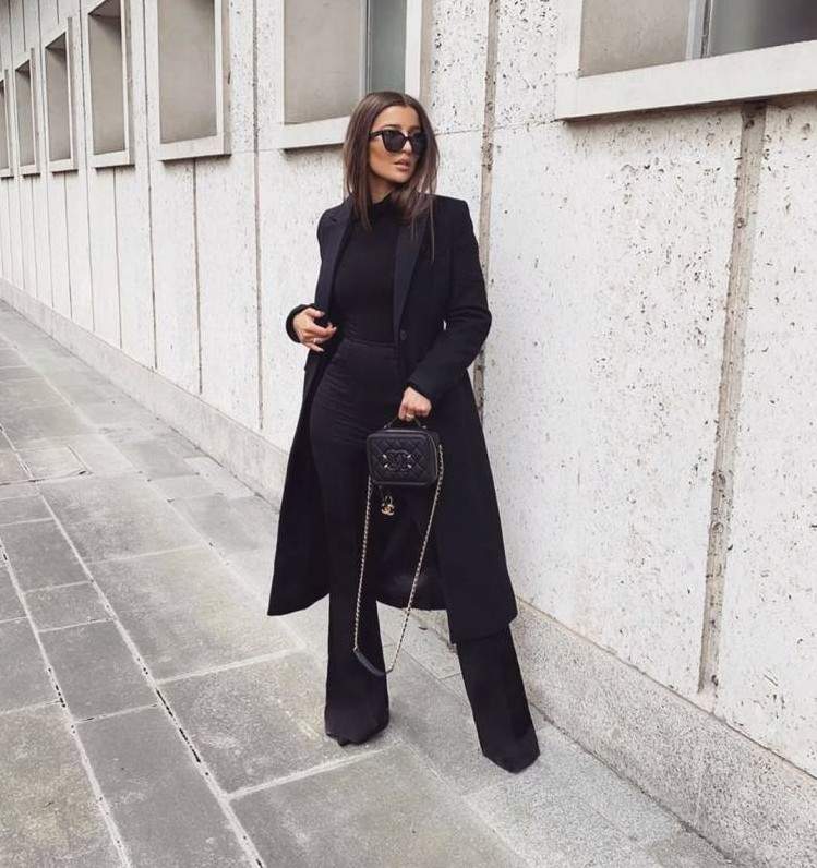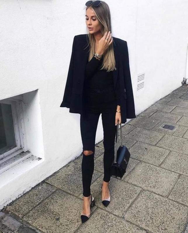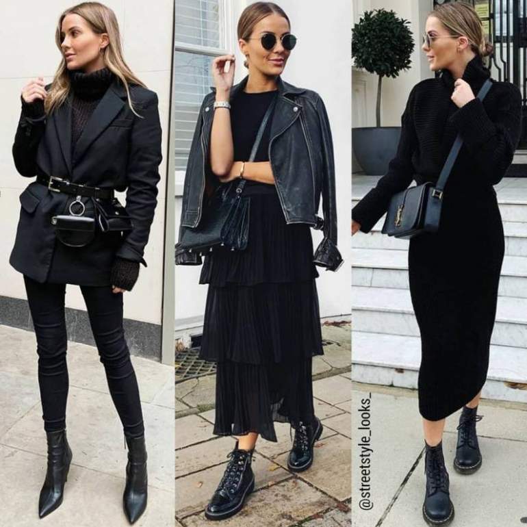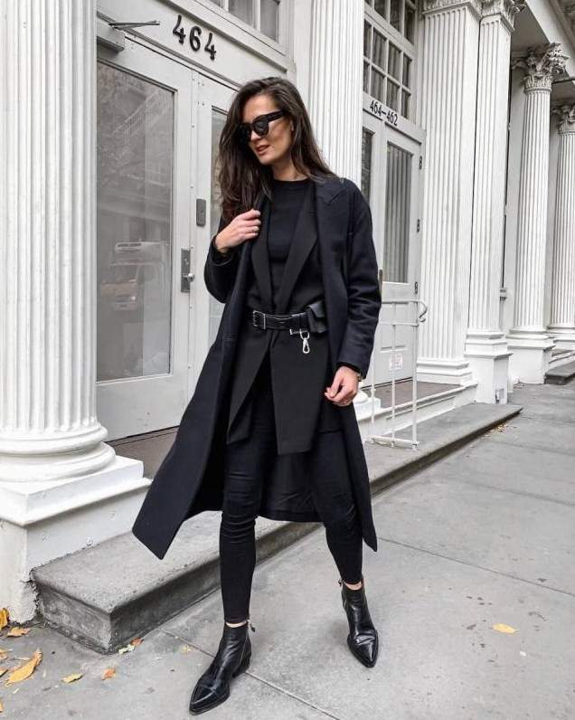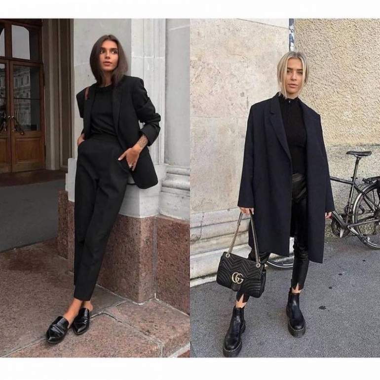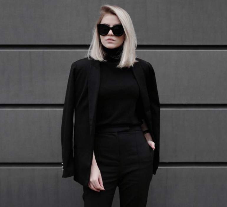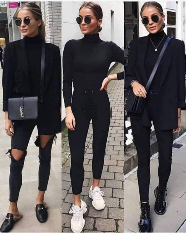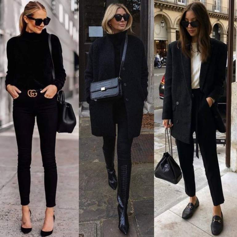 Стиль тотал Блэк в одежде женщины.