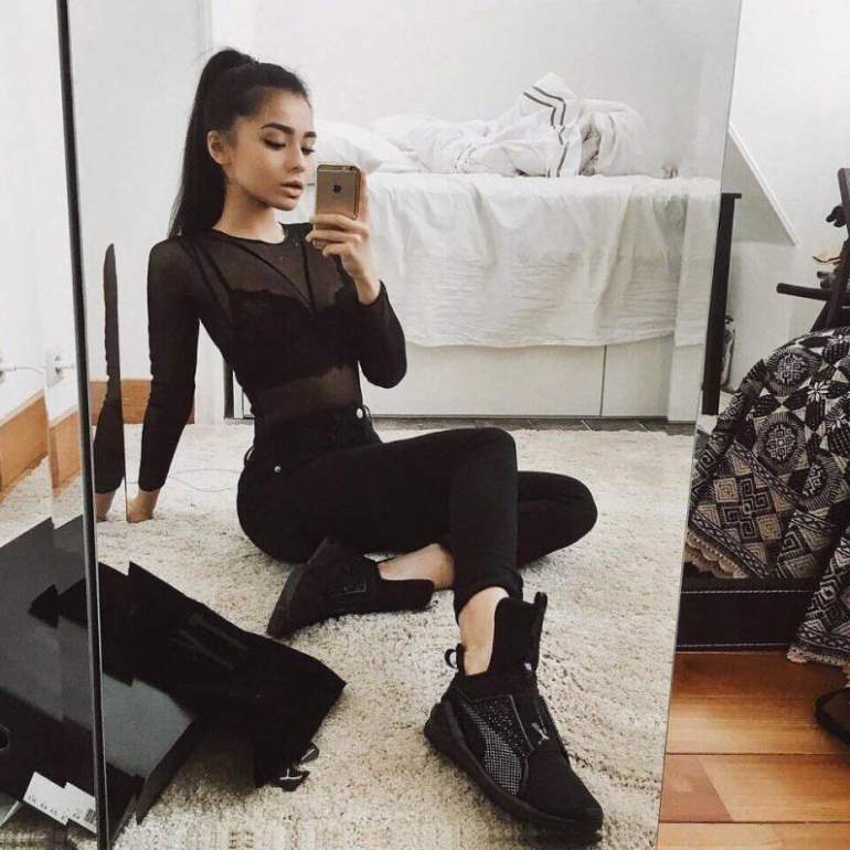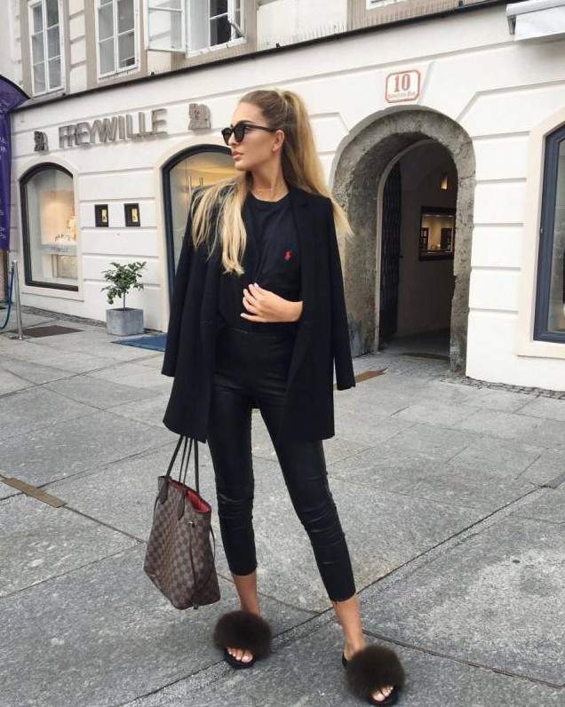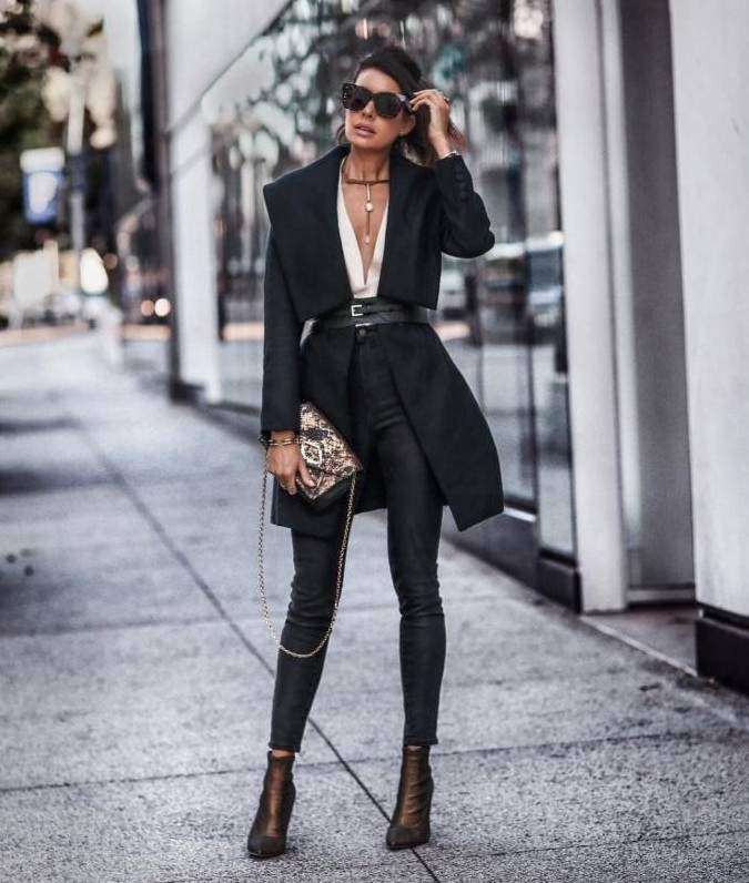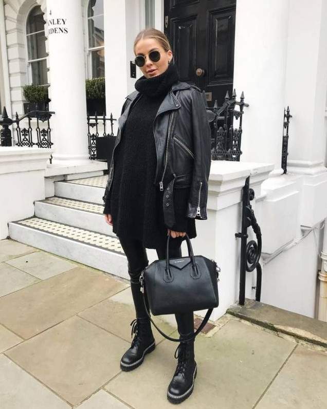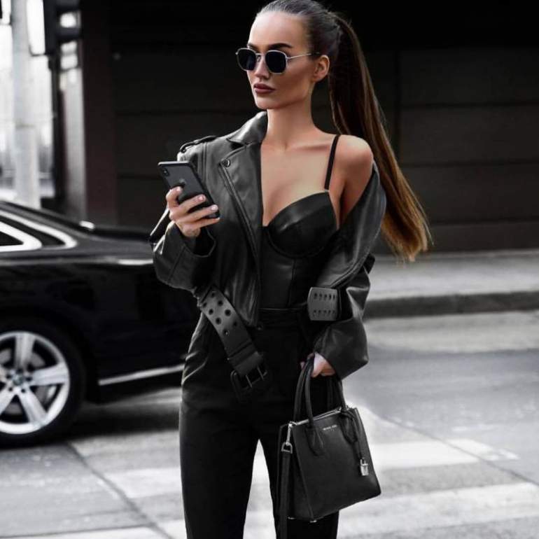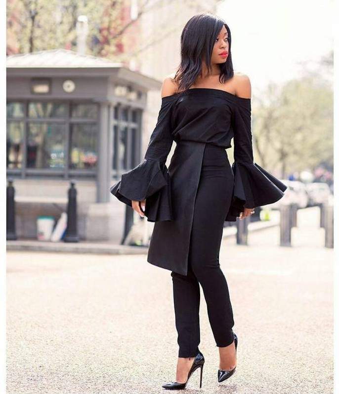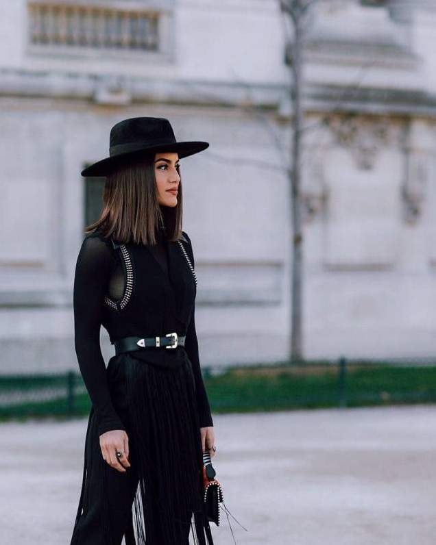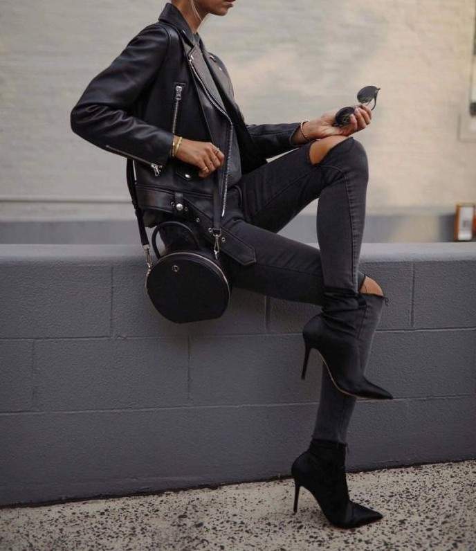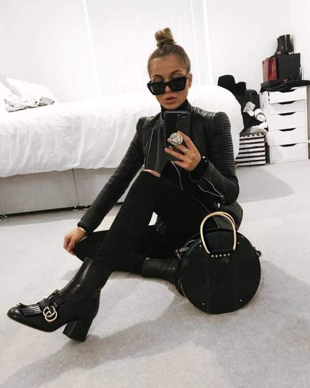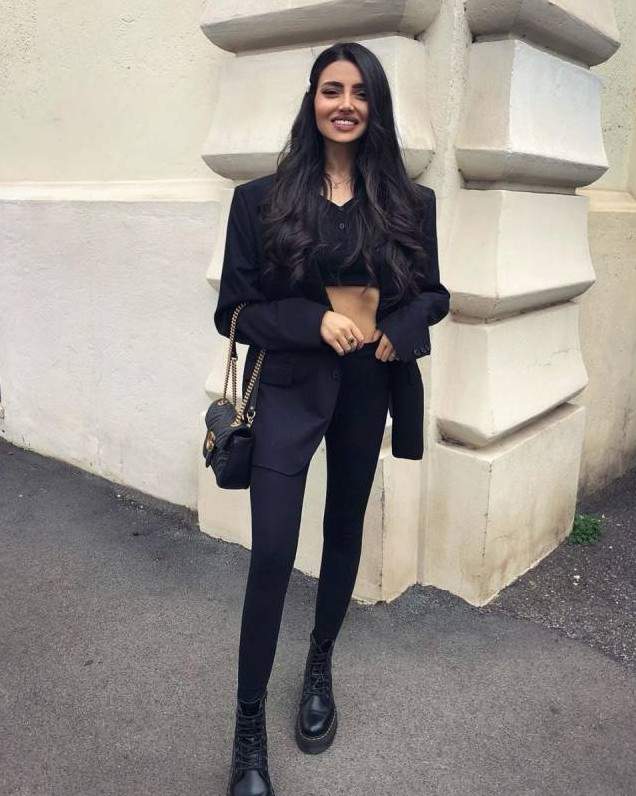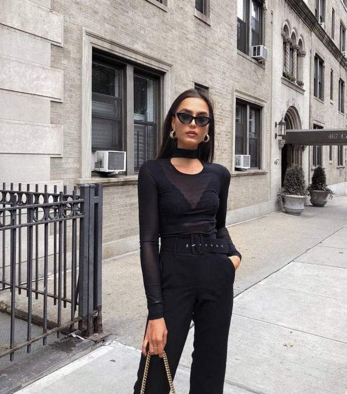 Стиль тотал Блэк в одежде женщины.
