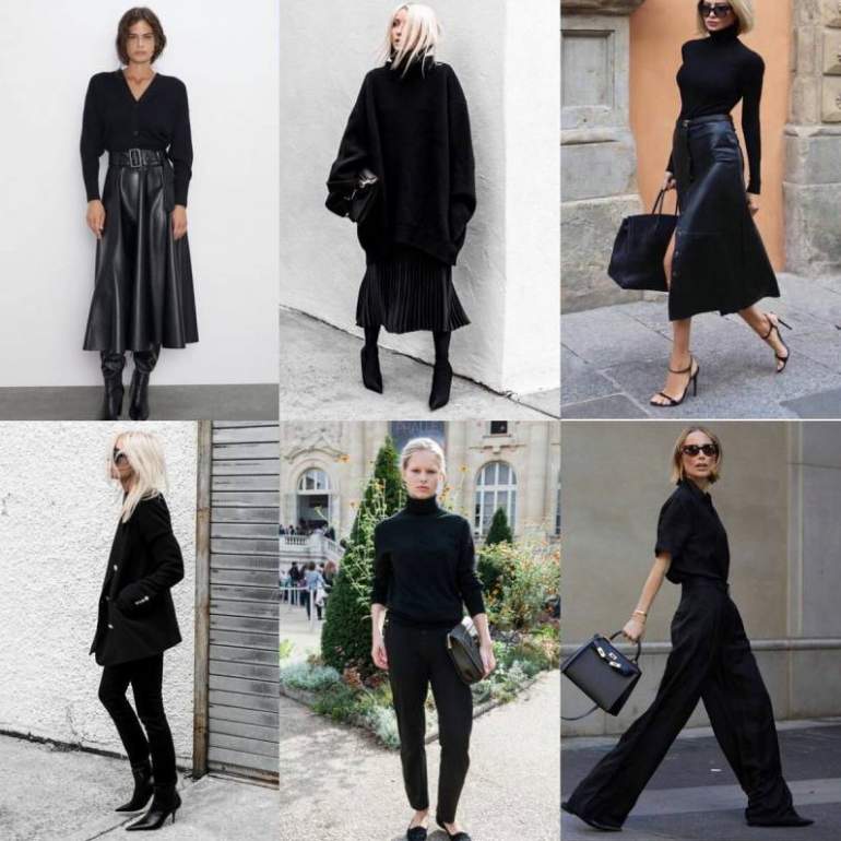 Стиль итальянок в одежде в черном цвете.
