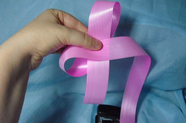 Бант из пластмассовой ленты своими.