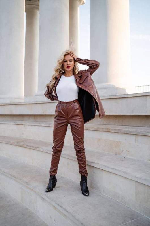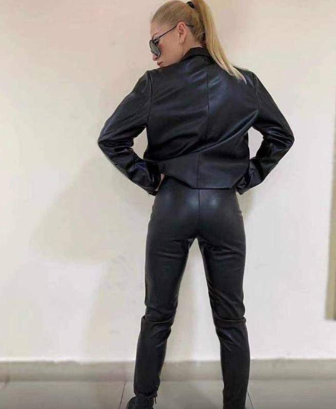Кожаный брючный костюмчик дамский.