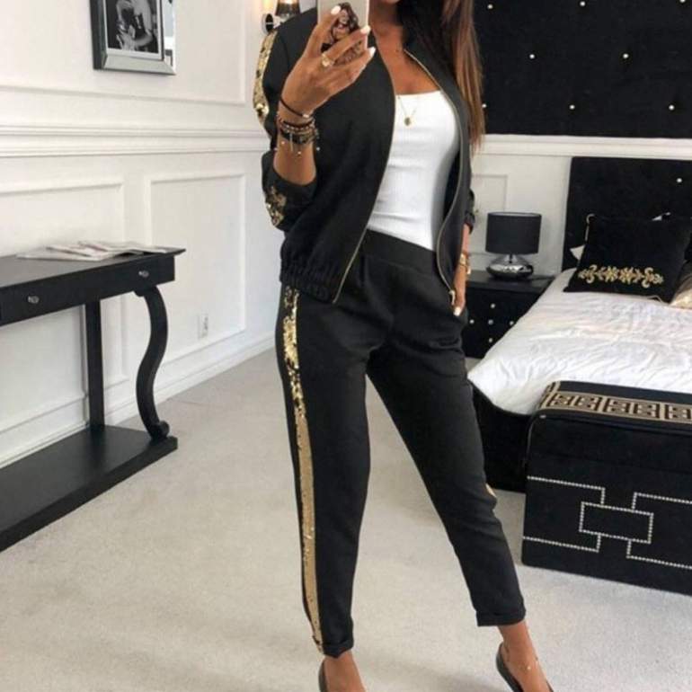 Брючный костюмчик с пайетками.