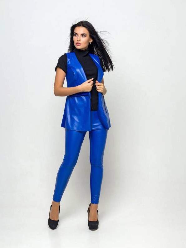 Костюмчик из экокожи дамские брючные.