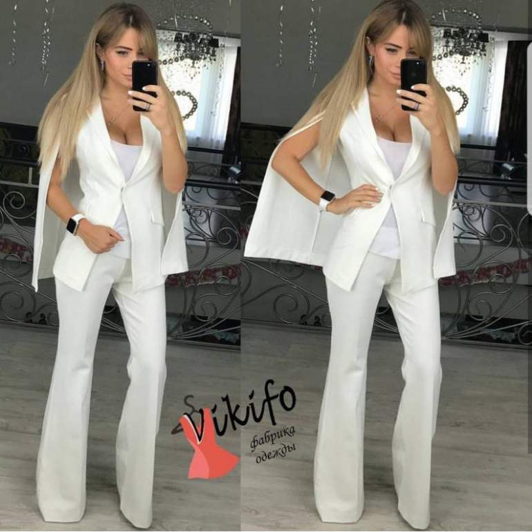 Белоснежный костюмчик с штанами клеш.
