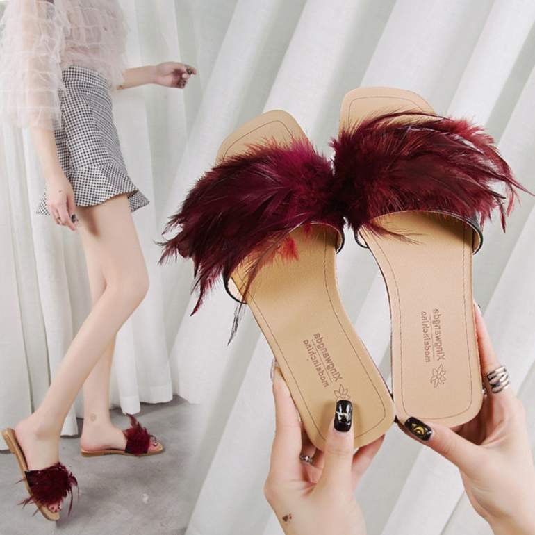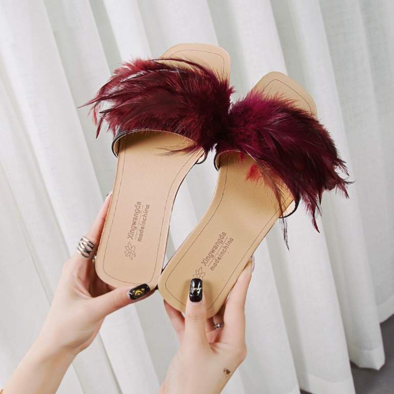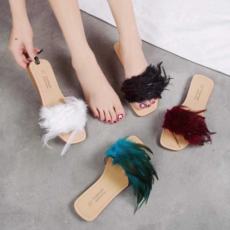 Сандали с перьями.