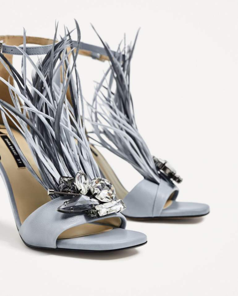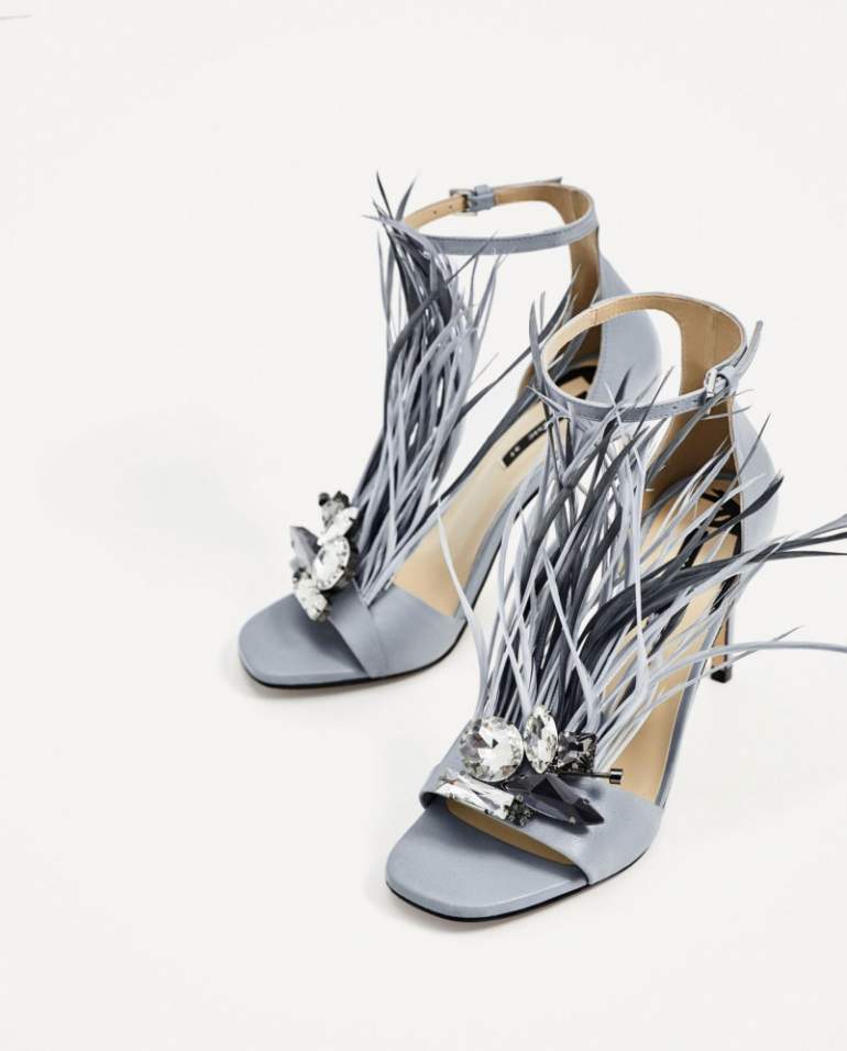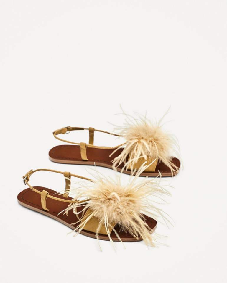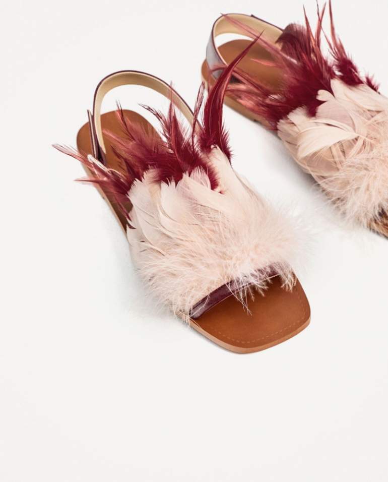 Босоножки Zara с перьями.