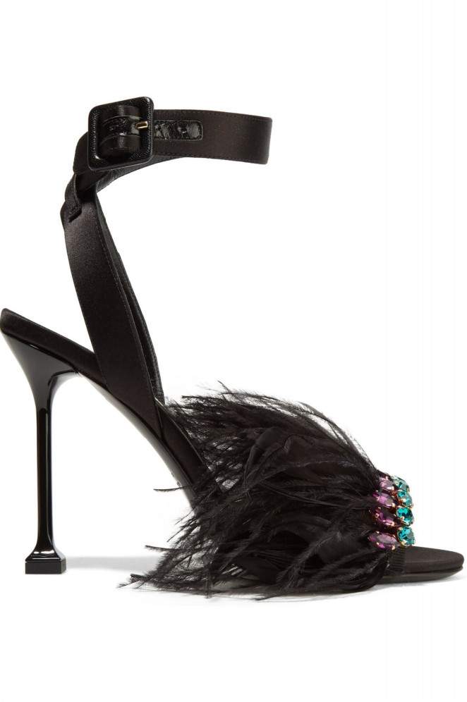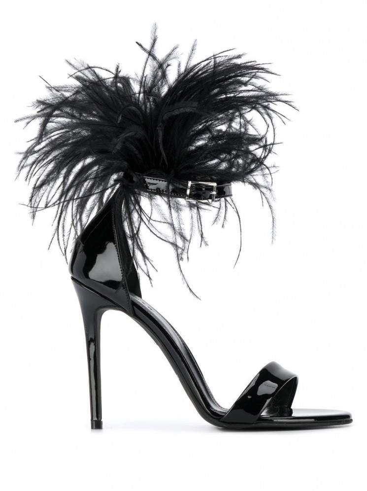 Босоножки Saint Laurent с перьями.