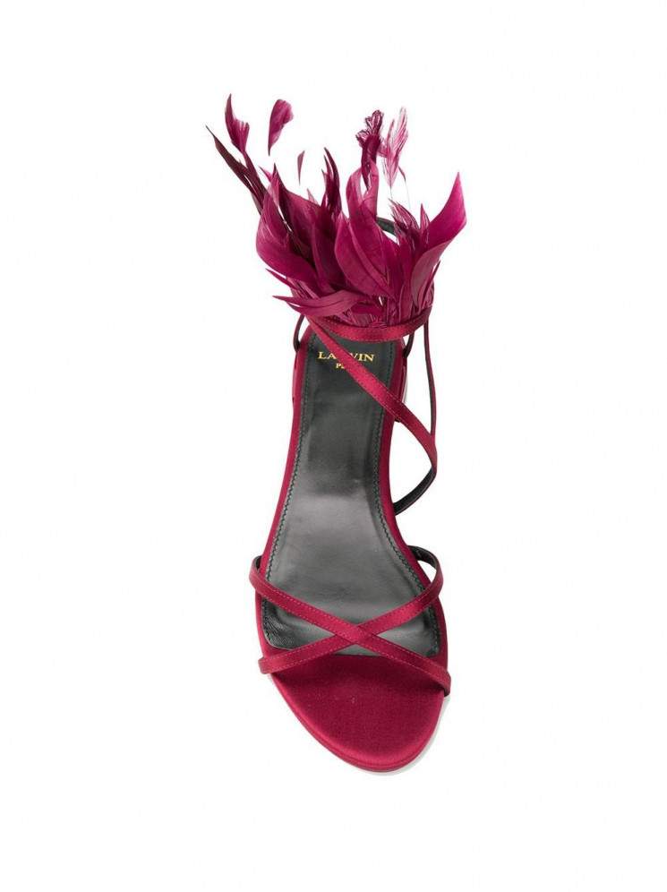 Фиолетовые босоножки с перьями.