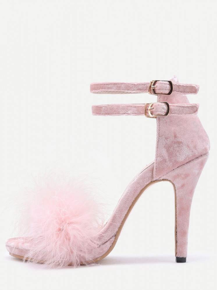 Босоножки с пушком на каблуке.