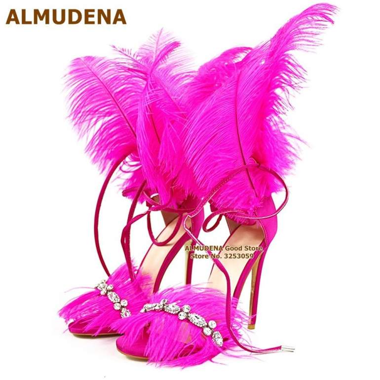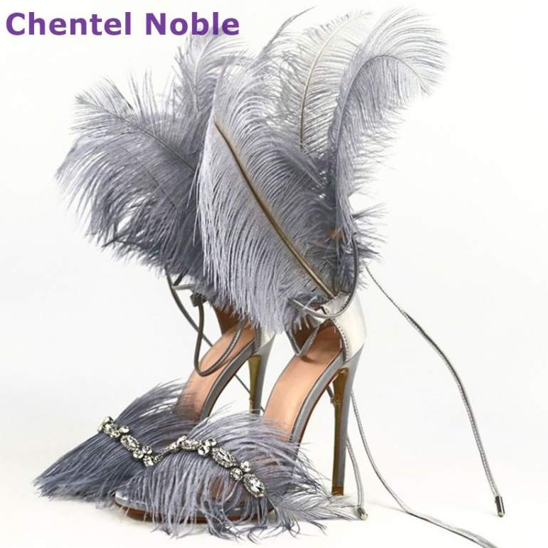 Босоножки с перьями страуса.