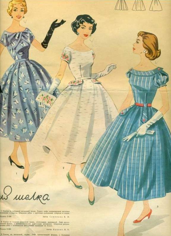 Мода 60-х СССР,крепдешиновые красивые платья.