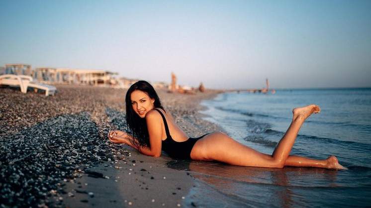 Море пляж эротика с брюнеткой.
