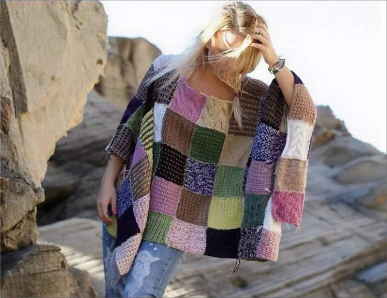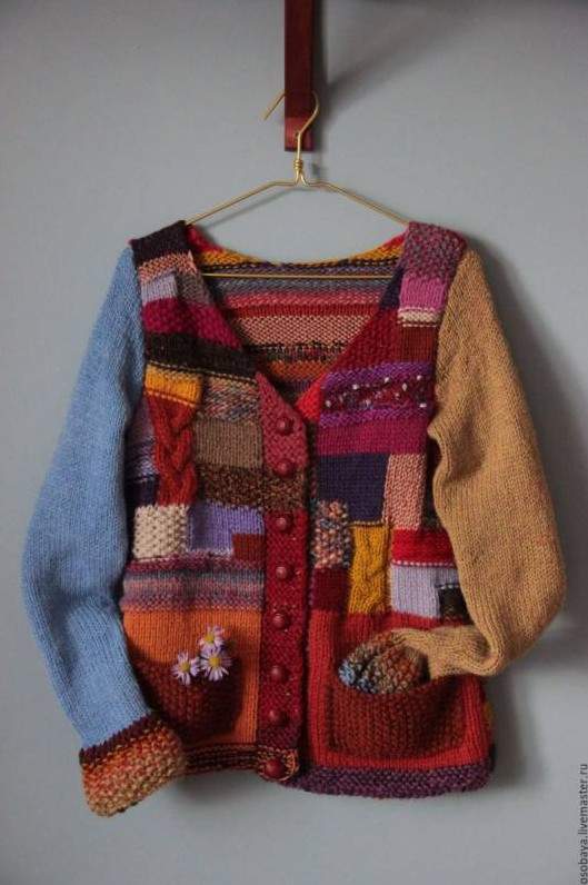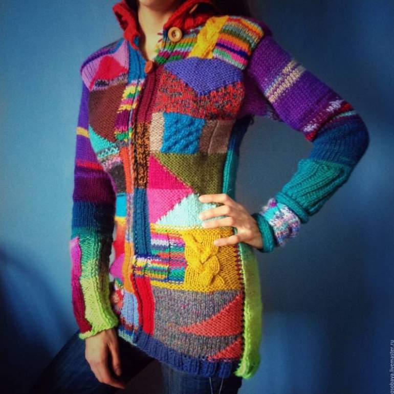 Вязаные вещи в стиле пэчворк.