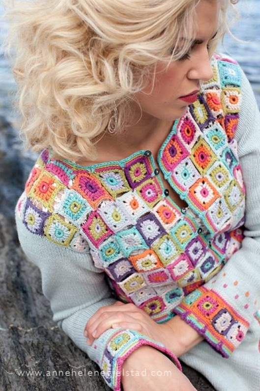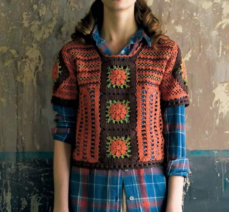 Кофты связанные квадратами.
