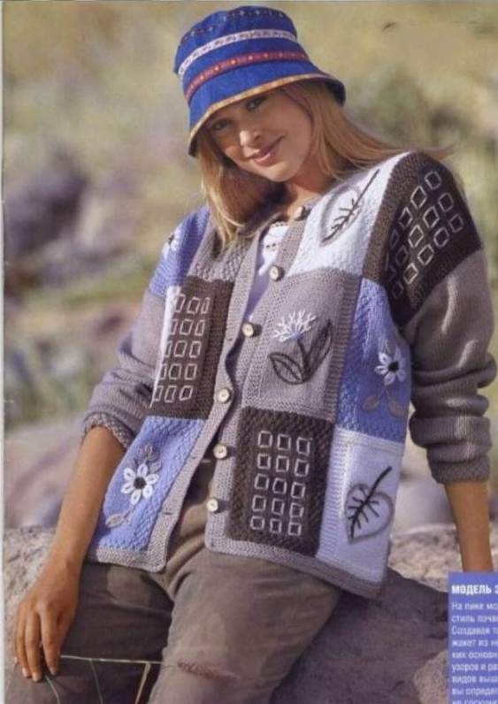 Вязаный жакет в стиле пэчворк.