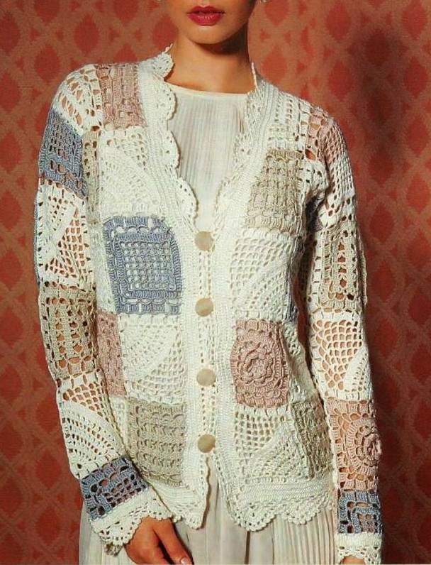 Кардиган в стиле пэчворк спицами.