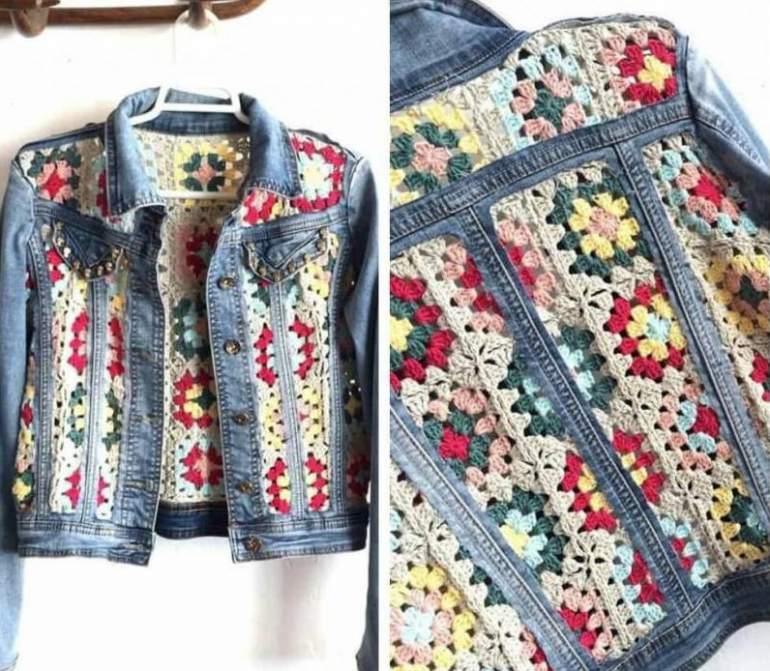 Комбинированные вязаные вещи с джинсовой тканью.