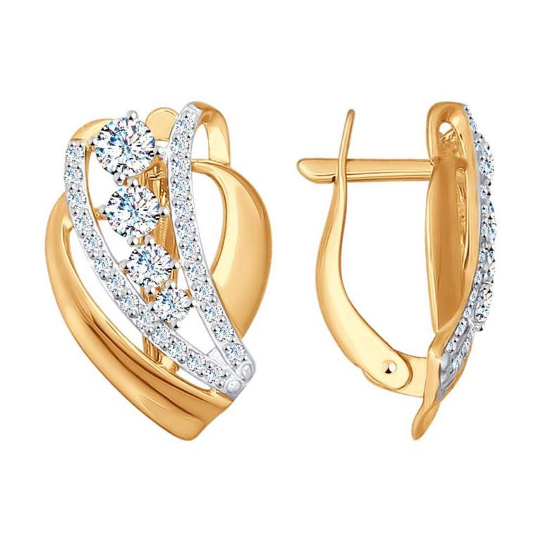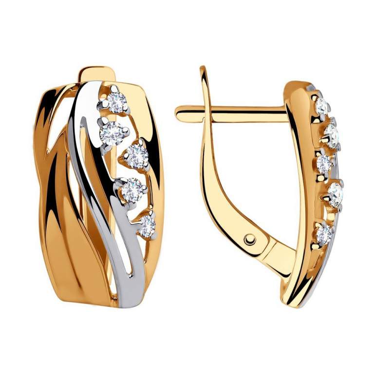 Серьги с фианитами из золота 585 Соколов.
