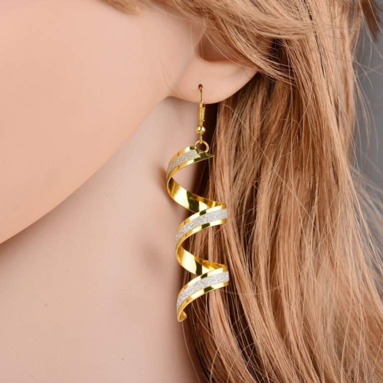 Серьги спиральки золотые длинные.