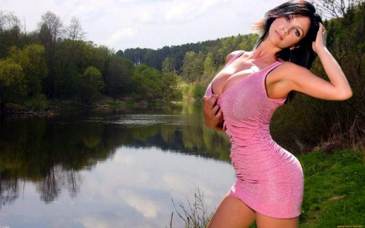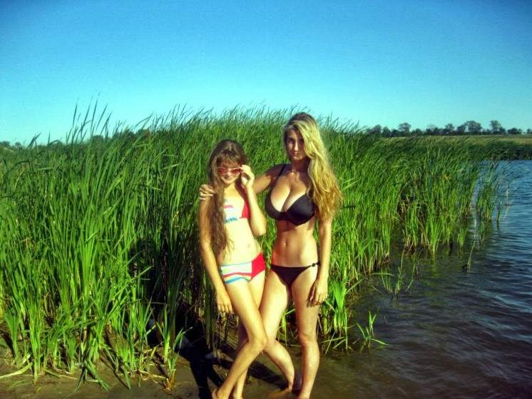 Русские сисястые у реки.