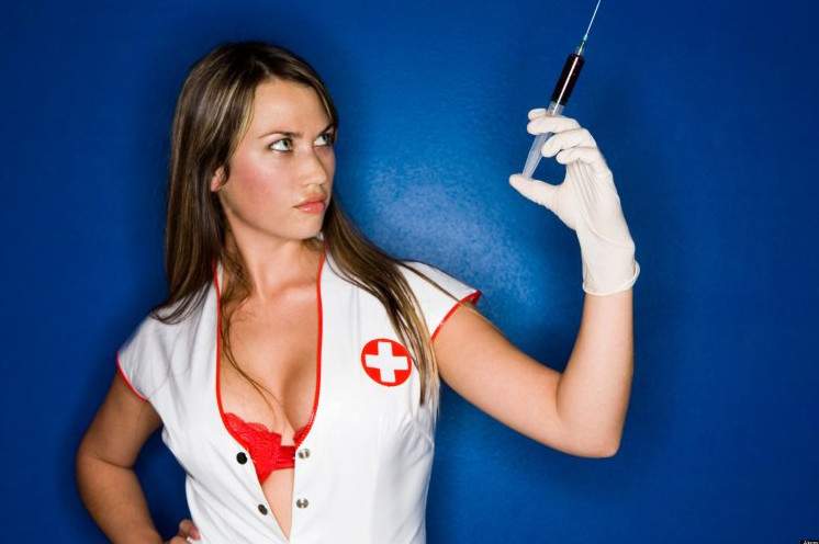 Медсестра со шприцом сисястая.