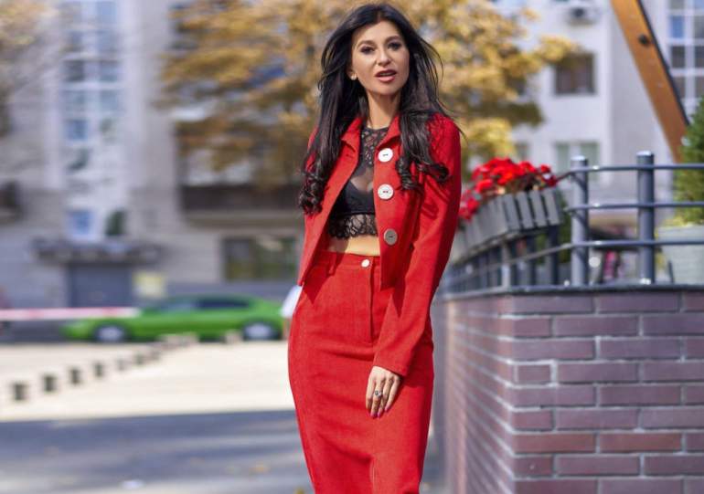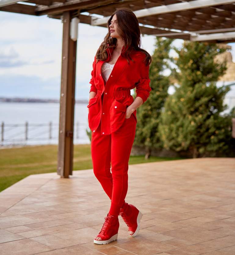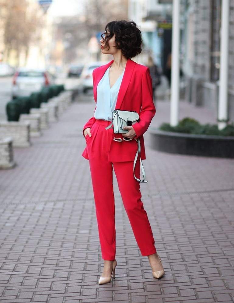 Очень красный летний брючный костюмчик.