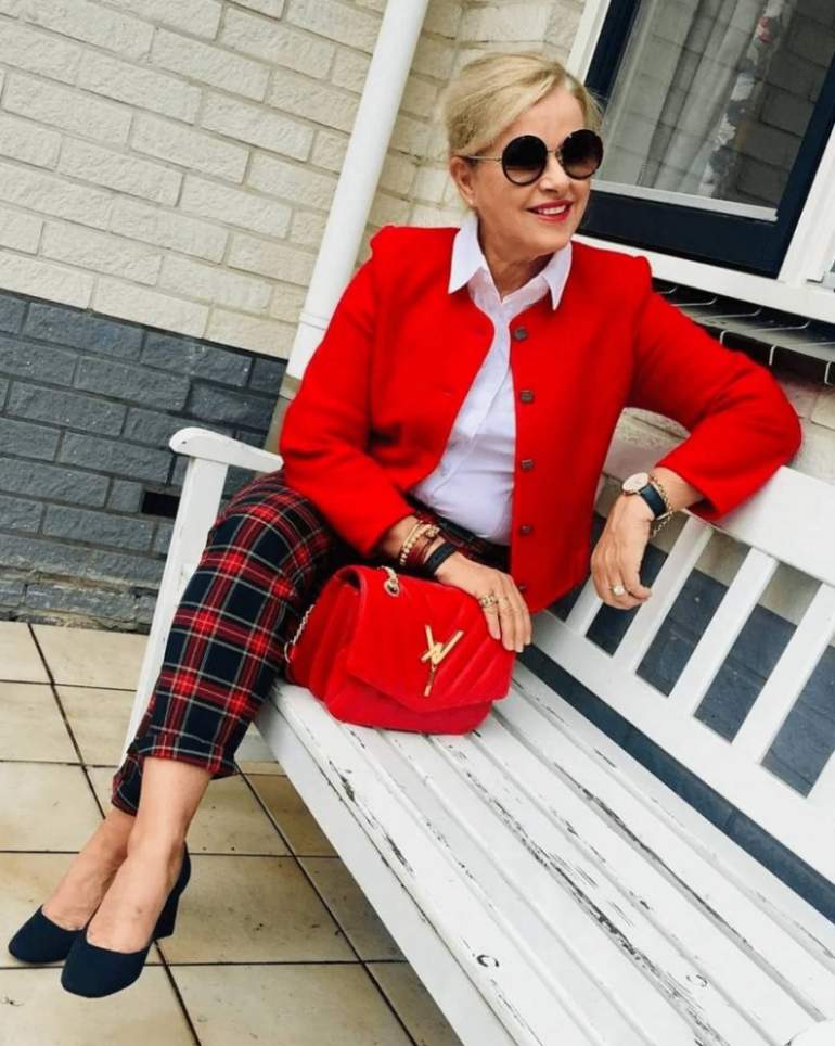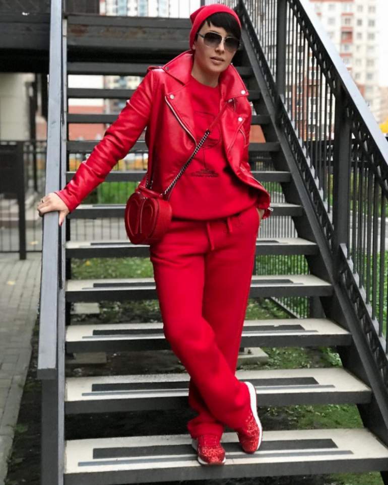 Сочетание цветов в одежде очень красный.