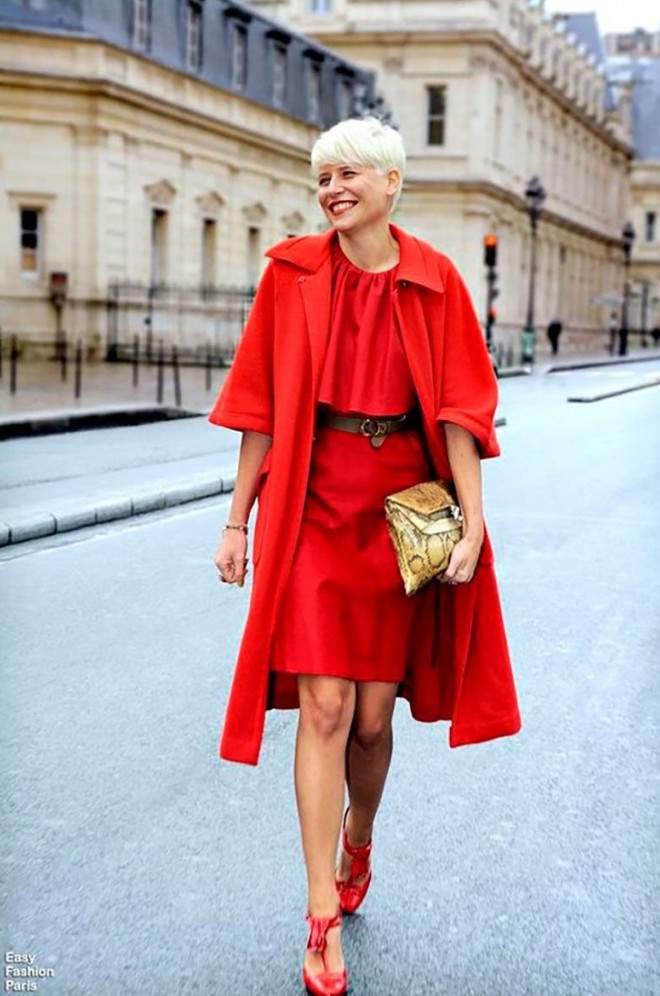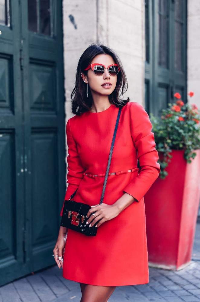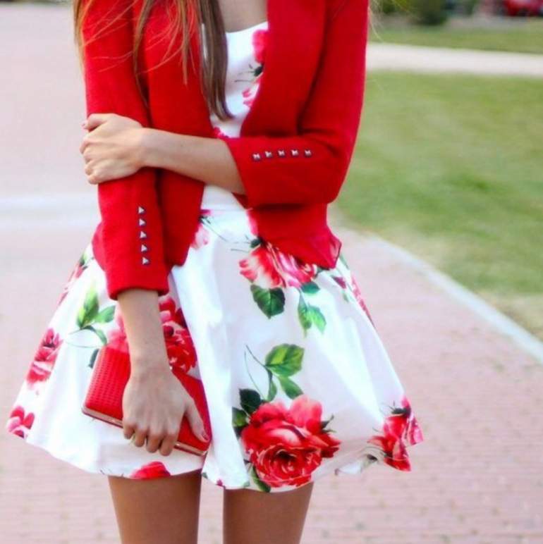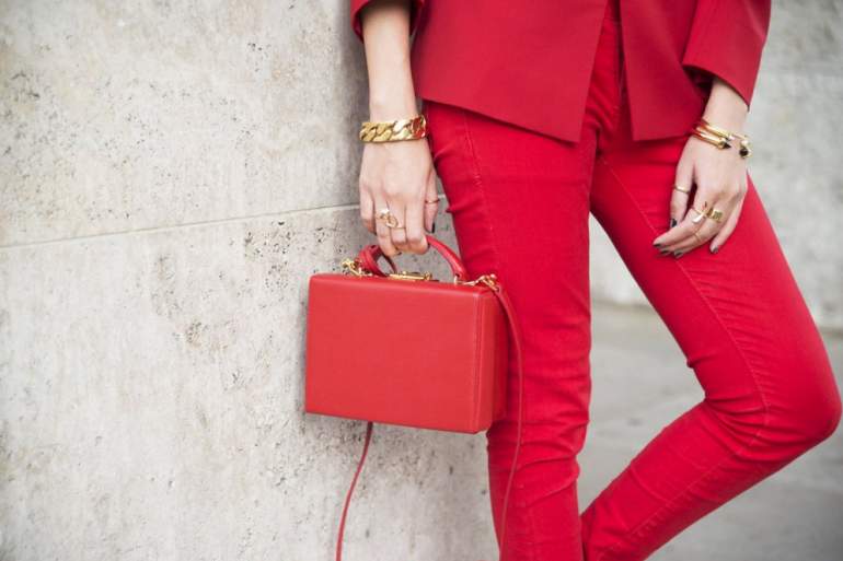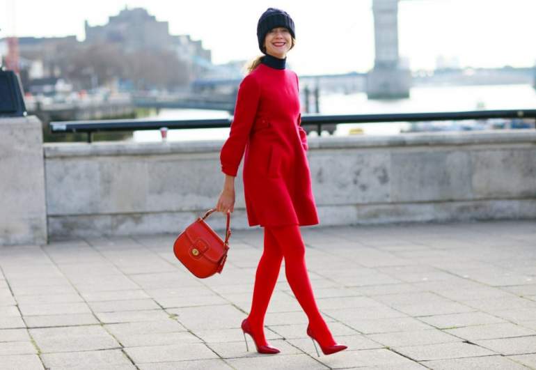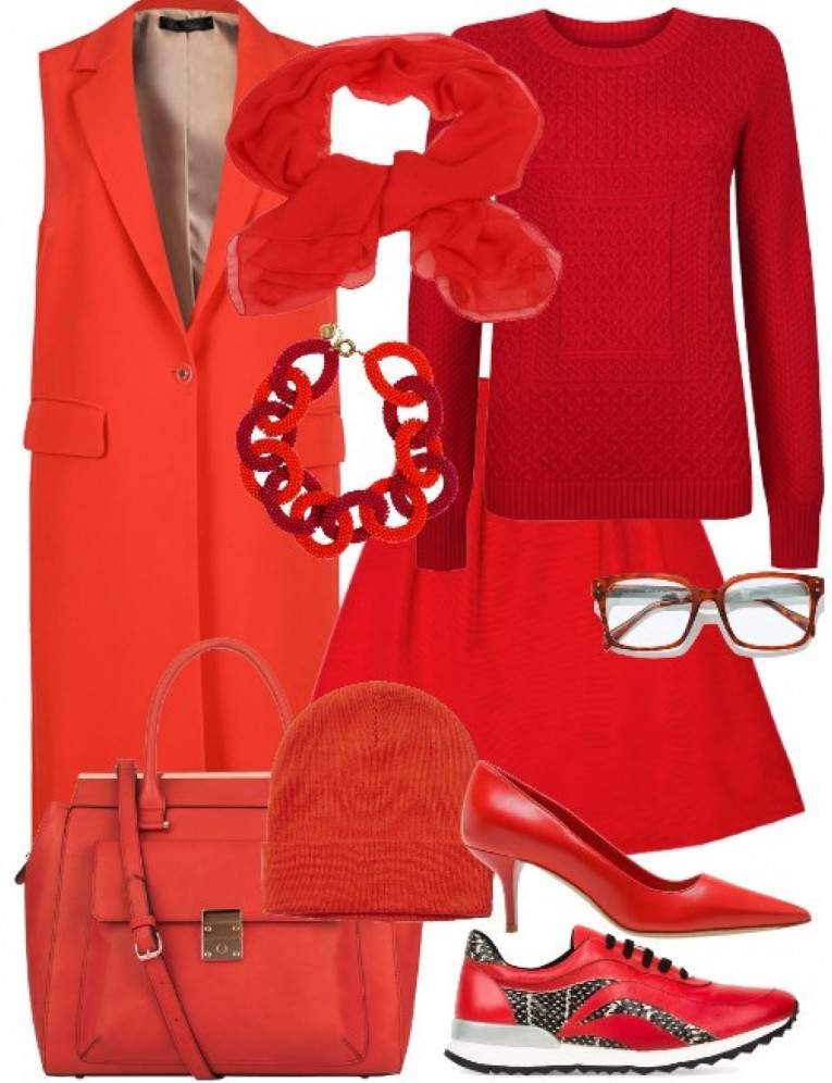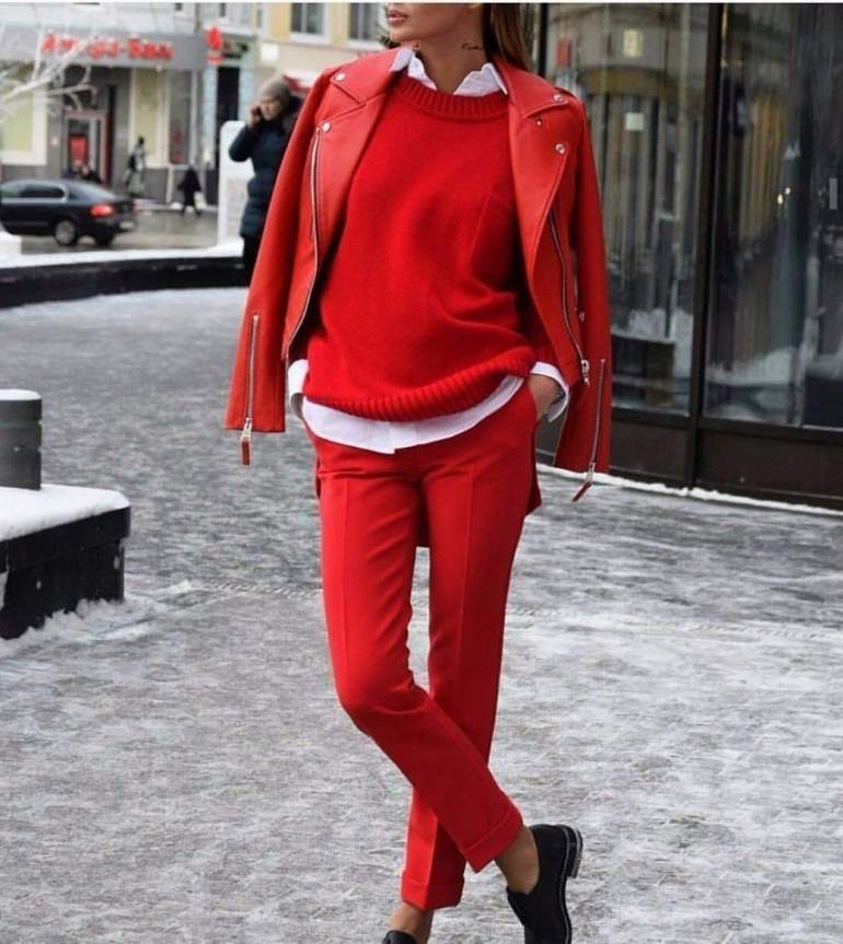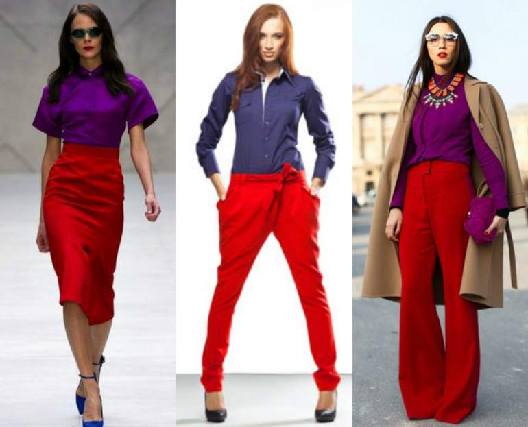 Сочетание сильно красного в одежде.